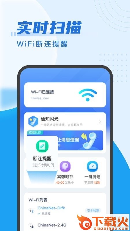 来享wifi是一款非常好用的WiFi管理软件。能够快速的连接管理不同的WiFi,还可以智能优化网络信号问题,降低延迟以及隐私信息泄露,简单又方便。