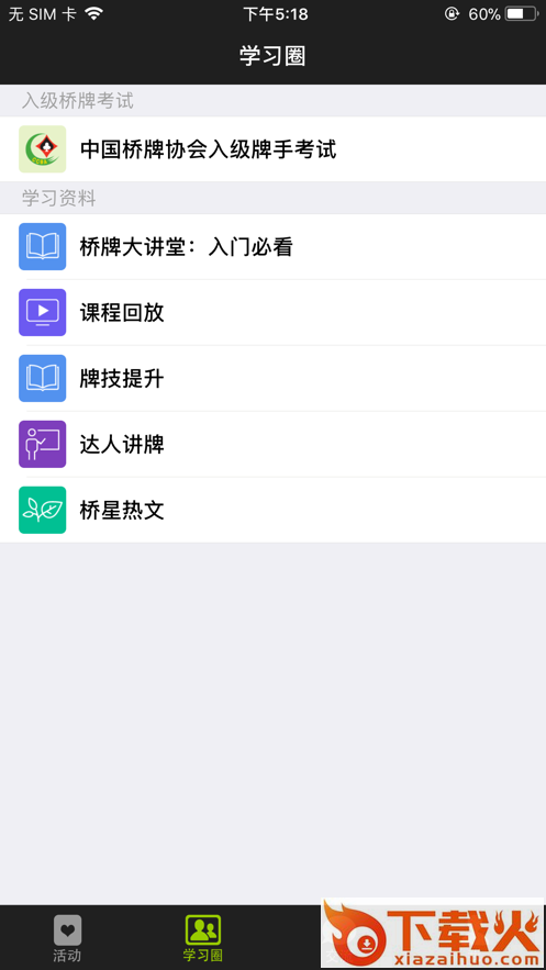 新睿桥牌学堂app下载是一款手机桥牌教学工具,软件拥有活动、桥信、学习圈、我四大功能区,可以帮助用户桥牌交友,并随时随地轻松学习桥牌。
