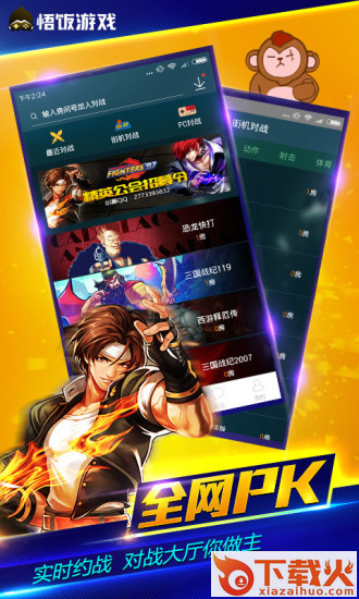 1、拳皇97、98、三国战纪、街头霸王等网络实时联机对战。