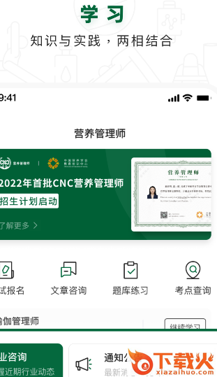 营养管理师app是一款由互维营养文化教育科技(广州)有限公司开发的营养管理学习软件,软件内拥有非常全面的营养管理学习资料,用户可以通过本软件在线学习,成为专业的运动员营养管理教练,提高考证通过率。