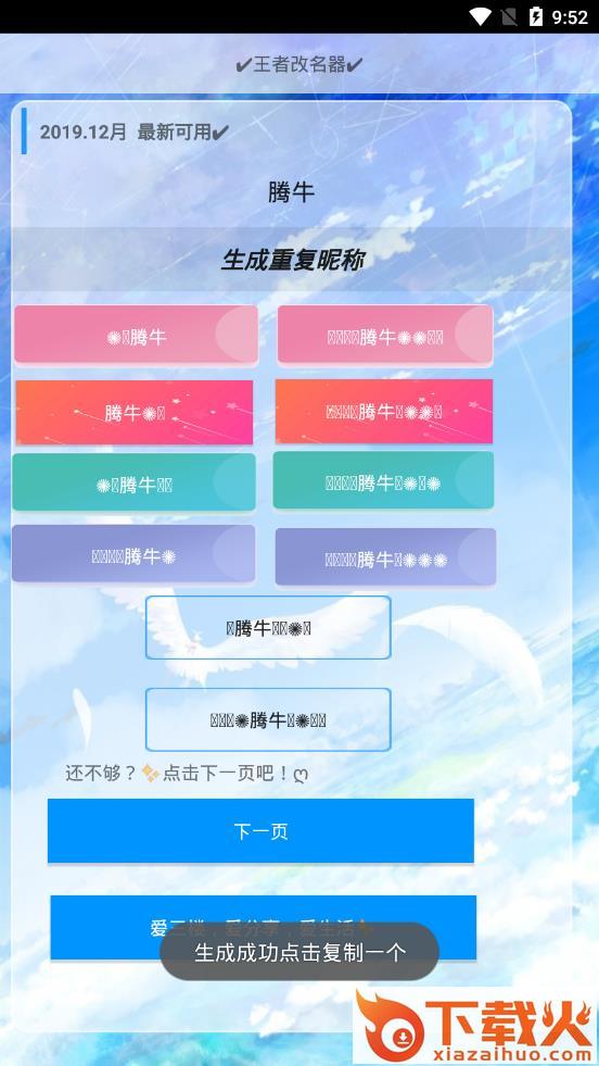 王者改名器app是一款简单实用的免费改名软件。输入重复的ID昵称,系统就会生成特殊字符ID,点击复制粘贴在起名栏,即可显示你想要的重复ID名字。