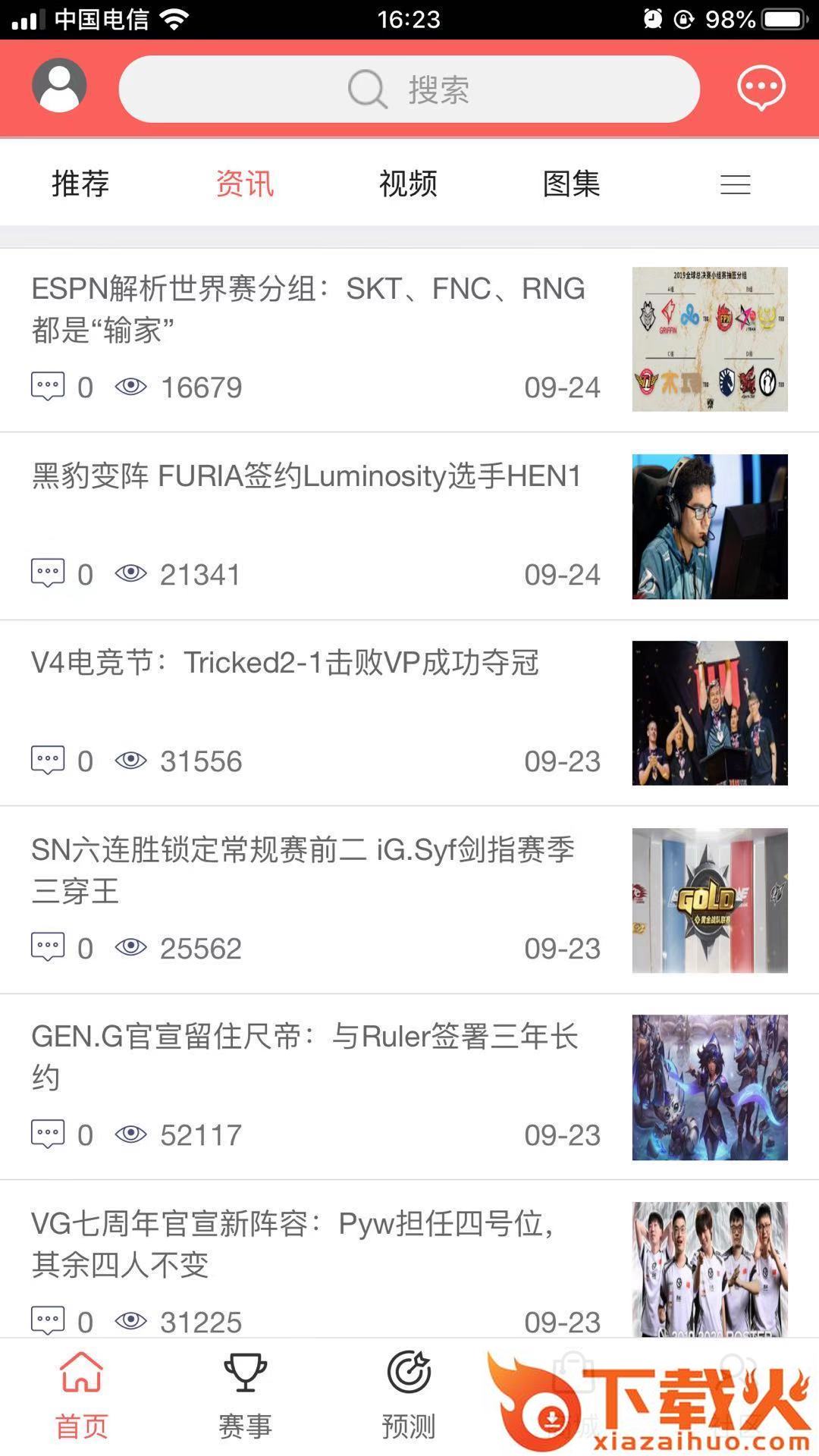 首页的主要内容是一些电竞赛事报道,电竞圈的一些资讯,推一些电竞类相关视频;