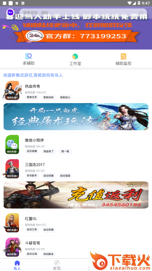 鸟人助手为全网99%热门新老手游提供辅助脚本,支持手游挂机一条龙。