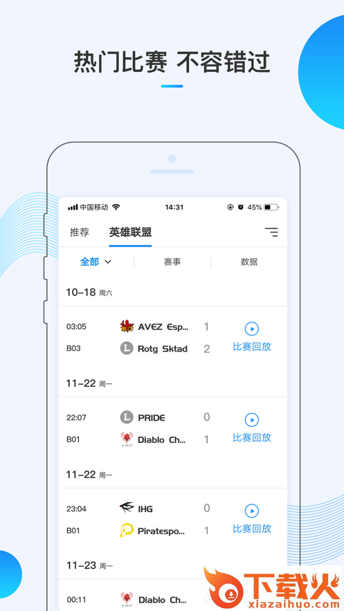 - 全面的赛事信息及专业的数据查询,还有比赛直播(更有专业的图文直播互动)让你不遗漏每一场比赛,为喜欢的游戏战队打call。