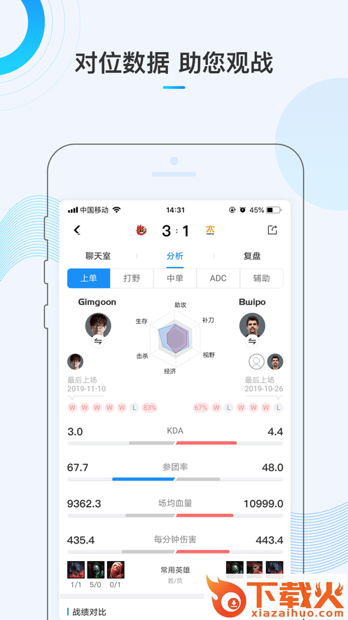 数据诠释赛事,预测阐述观点,资讯及社交于一体的竞技平台,为热爱电竞的玩家提供更快速、专业、全面的赛事服务。