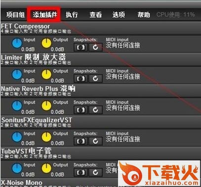 6、创建机架效果文件,添加所需要的效果插件,如果已经有效果文件直接导入调试好的效果。如下图: