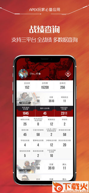 1,《Apex英雄》战绩查询,离线查询个人战绩、各英雄数据以及历史对战数据;