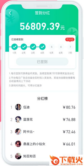 连续签到7天即可获得平台分红现金;