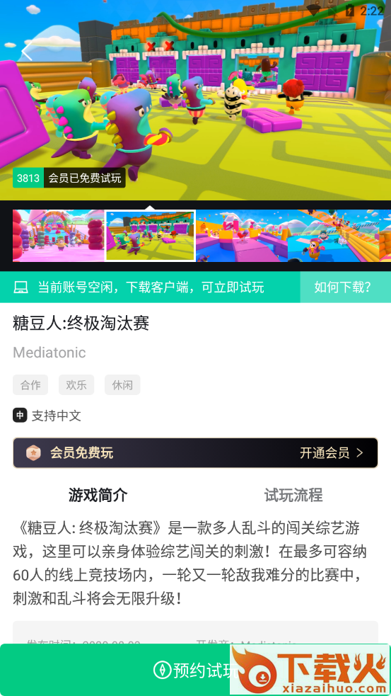 小泼猴试玩app,一款云游戏试玩平台。小泼猴支持糖豆人、绝地求生、人类一败涂地等1724款游戏免费预约试玩,海量游戏任你选择,一键即可轻松体验各种3A游戏大作,感兴趣的朋友点击下载吧。