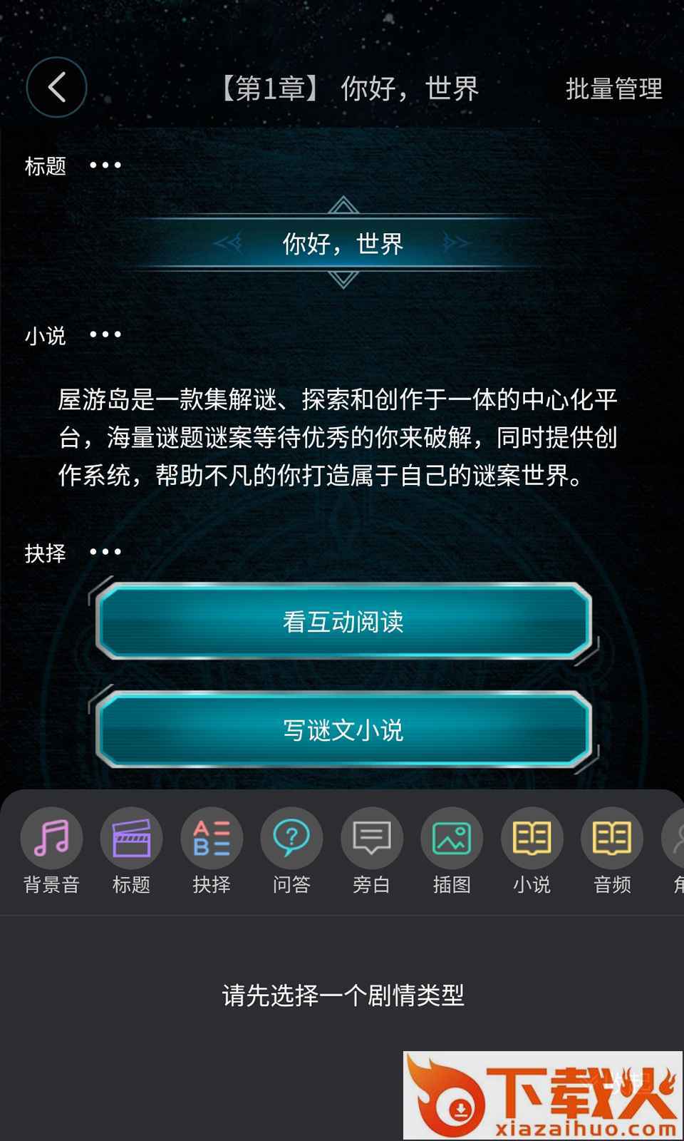 屋游岛app,一款仅仅是文字解谜游戏的平台,有官方的剧本,也能创作游戏剧本,分享给大家一起玩,这里包括侦探系列,密室逃脱系列等等,为喜欢文字解谜的玩家提供了一个非常好的根据地。