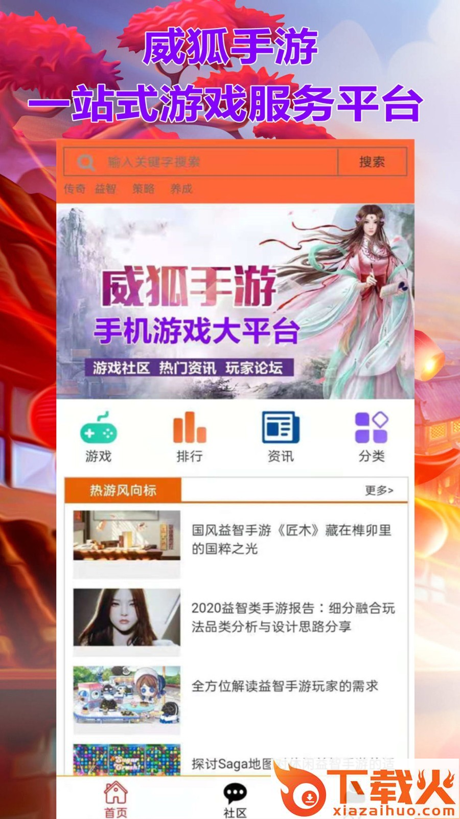 威狐手游app,汇聚大量优质资讯信息的手游社区,热门游戏资讯、游戏排行、游戏测评、玩家论坛等内容尽在其中,为你推荐各种好玩游戏,享受更优质的游戏服务。