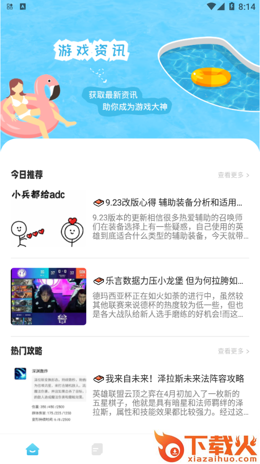 界面简洁简约,是集手游资讯,热点栏目,游戏攻略,高清游戏壁纸为一体的专业软件。