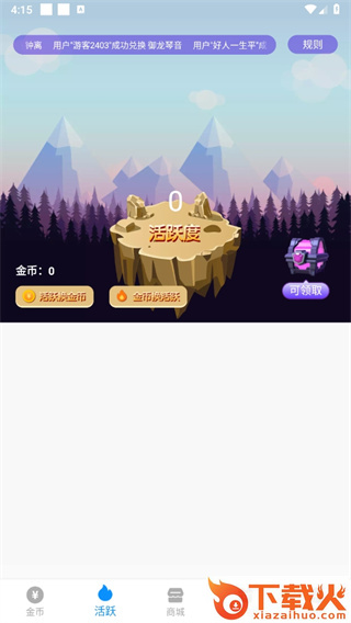 2、活跃度可兑换金币,10活跃度可兑换1000金币;