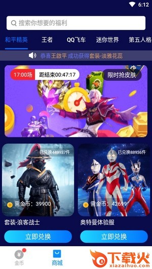 换肤大佬app是一款手游皮肤领取软件,用户通过软件每天登录就可以领取积分,利用积分就可以兑换各种游戏里的皮肤,游戏装备和各种奖品。