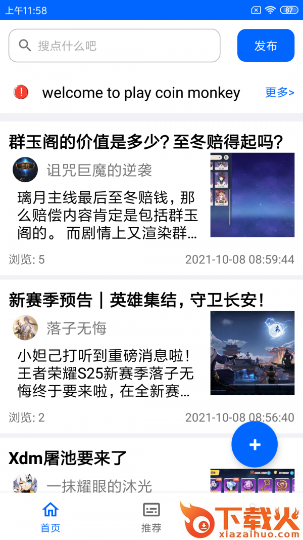 玩币猴app是一款十分有趣的游戏社区软件。软件为用户提供了超多的游戏资讯,用户能够随时随地在线查看,软件涵盖了多种热门游戏,还为用户提供了海量游戏攻略,让用户玩游戏更轻松。