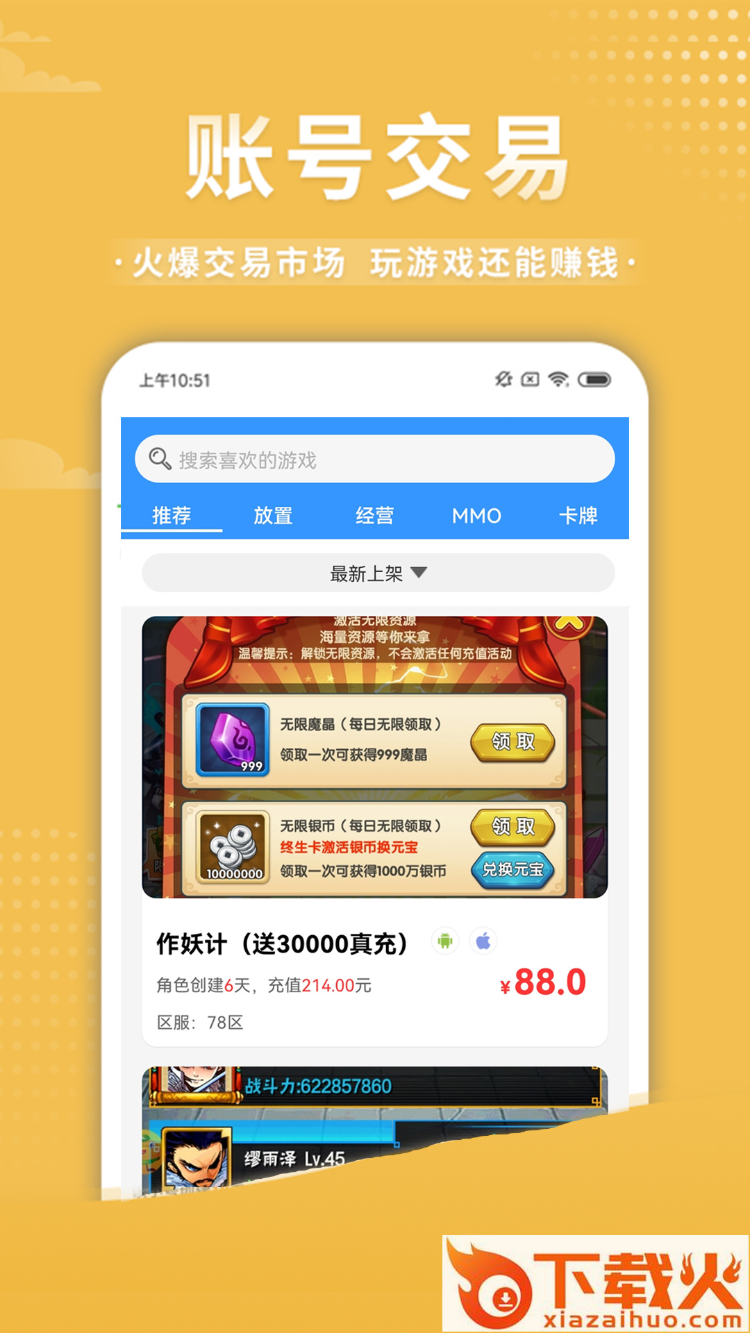 闲置游戏账号一键上架出售,千万游戏玩家账号交易选择。