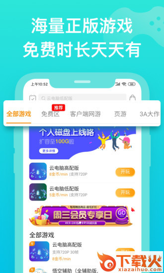 云电脑高配/低配版,配备超大个人专属磁盘,保存你的游戏、存档、辅助工具,实现你的游戏自由。平台还提供多款游戏内容、游戏辅助、加速器等供你选择。