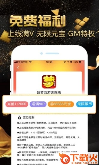 1.福利手游:送至尊VIP,无限元宝,GM特权,3倍加速!