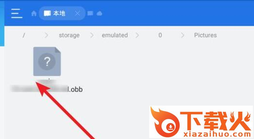 3、然后找到安卓手机的找到obb文件的位置:/storage/emulated/0/pictures
