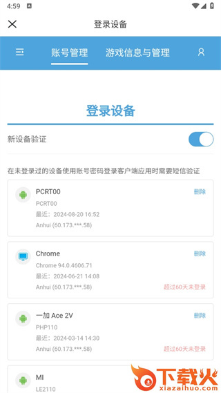 8、最后点击过后在登录设备的页面中我们直接点击关闭【新设备验证】后面的按钮即可;