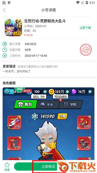 4、最后来到小号详情的页面中直接点击【立即购买】即可;