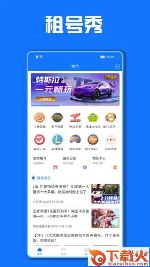 租号秀是为玩家提供高端账号体验服务的综合APP。