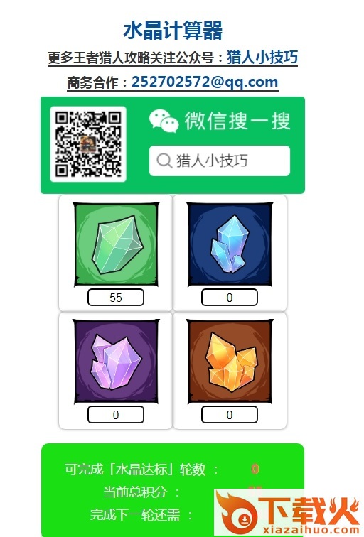 王者猎人水晶计算器app是一款专为玩王者猎人游戏的玩家提供游戏辅助的手机软件,这款手机工具带给每位用户更加全面的操作使用,简单去上就可以去进行计分使用,不仅可以随时去获取计分的简单与便捷,还可以让用户玩游戏的体验更加去全面哦。