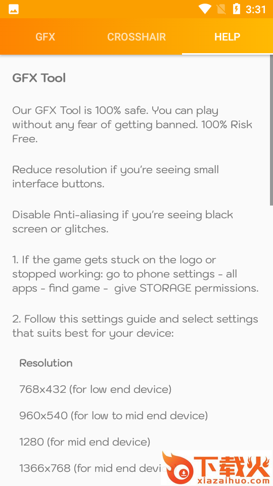 3、最新版本的GFX工具也可以完全适应低范围设备使用低图形设置,和高光永不停止;