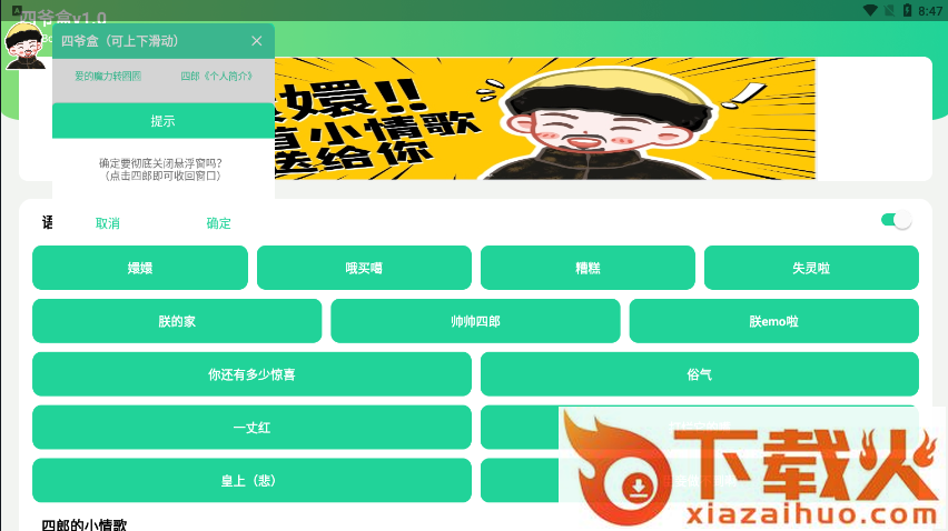 四爷盒是款非常好用的游戏助手,各种魔性的音效任你选择,适用于各种游戏内容,自带悬浮窗任你体验更佳,超多语录手机带来了全新的乐趣,感兴趣的小伙伴快来点击下载体验吧!...