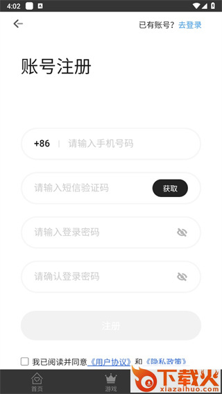 3、最后来到账号注册的页面输入上手机号、验证码和密码后点击【注册】即可;