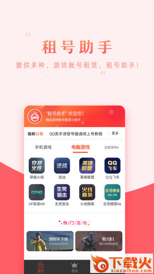 租号助手app下载,汇聚更多热门人气手游,更多极品精英账号,小伙伴们可以随时随地放心租,租号助手app电脑游戏还可以一键快捷上号哦,有需要就来下载!...