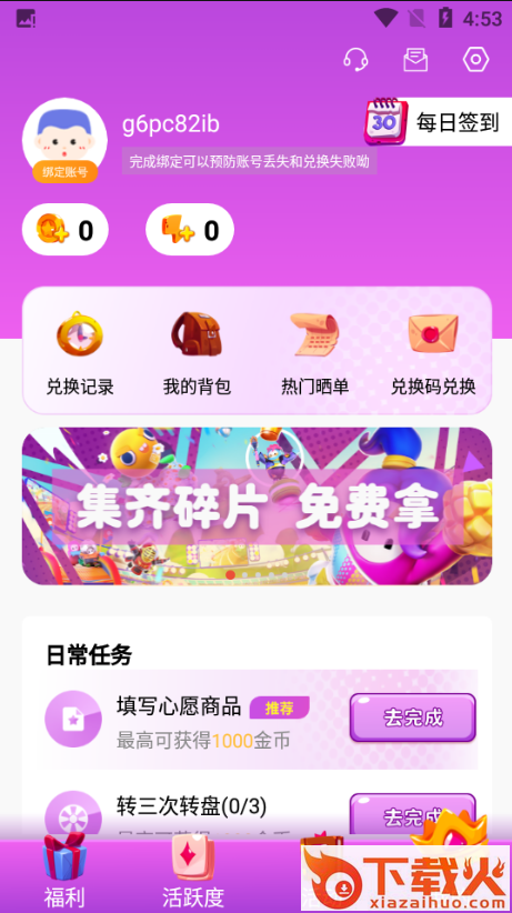 2、非常棒的免费皮肤获取软件,您只需完成平台上的任务即可兑换它,非常简单;