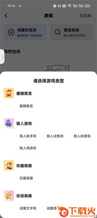 2、然后来到房间的页面中可以搜索、创建、加入房间,在这里点击【创建好友房间】;