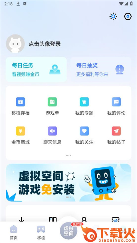 1、首先打开爱吾游戏宝盒软件,进入到首页切换到【虚拟空间】的页面;