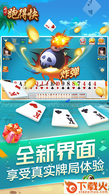 4、跑得快,16张扑克牌,有大必出,四炸现结,牌友PK!任务活动享不停!