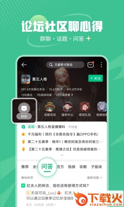 1)游戏圈:大咖玩家全集结,陪你一起看公告刷攻略,交流闯关经验。