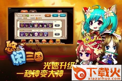 悠闲三国是一款偏休闲风的卡牌游戏,多样的武将缘分,自由的培养方式,丰富的人物属性、热血的打斗挂机、多样的武将缘分,自由的培养方式,搭配令人心痒痒的弹幕吐槽,带给您不一样的乐趣。...