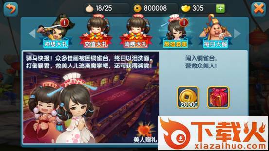 英雄救美,这一活动容易被忽略,其实每天通过救美人也能获得很多的铜币及道具奖励,人品好的话,还可以收到美人的信笺,通过少量玫瑰花就可以领取双倍的移星罗盘,强化石和金宝箱等奖励。