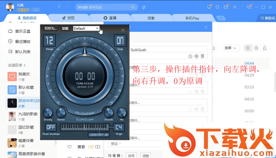 第三步,操作插件指针,向左降调,向右升调,0为原调