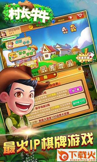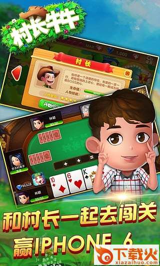 《村长牛牛》是一款由《爸爸去哪儿》栏目村长李锐代言并配音的休闲棋牌类手机游戏,这款游戏拥有Q型激萌的人物造型,华丽炫酷的游戏界面以及身临其境的游戏音效,省流量、易安装!《村长牛牛》首创闯关夺宝的全新游...