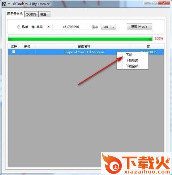 3.如果是网易云音乐的话,选择歌单或者单曲,然后粘贴ID,设置码率,就可以获取音乐;