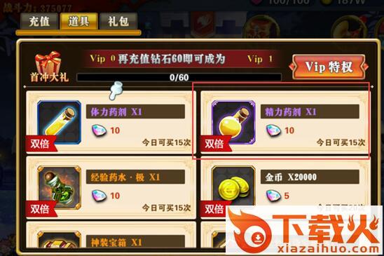 4、商城购买。在商城可以花费钻石获取精力药剂。