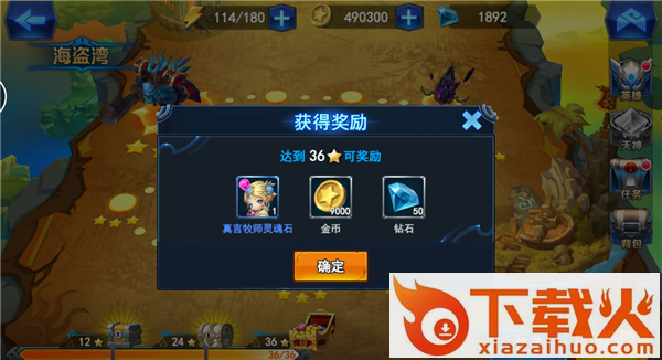 副本通关达到一定的星数以后,可以在游戏左下角开启相应的宝箱,其中自然是宝箱越大钻石获取量越大的。