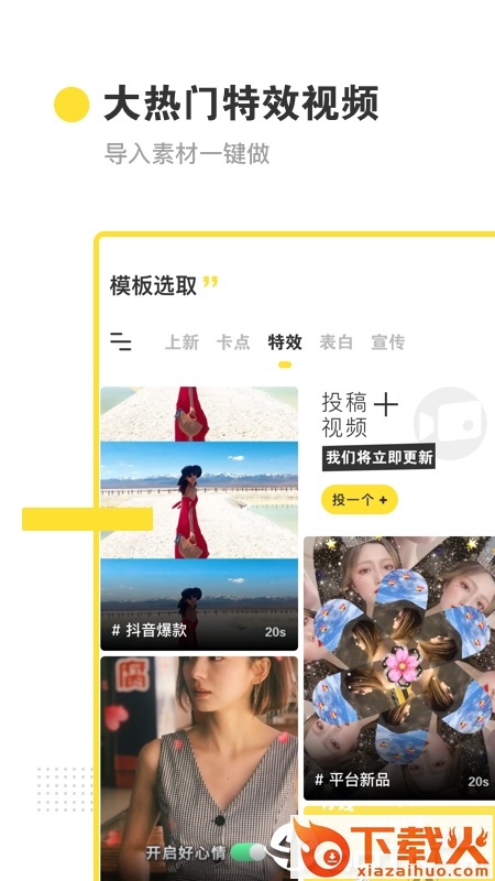 每日更新素材,一键制作热门卡点视频,秒变技术流~支持图片卡点,音乐卡点,视频卡点。
