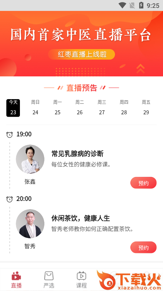 红枣直播app,电商直播平台。中医直播,中医儿科、妇科、男科、外治法等多种健康直播分类,还有各种中医好商品实时推出,物优价廉。需要的朋友点击下载吧。