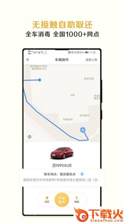 支持自助取车和还车,手机下单就可以用车,随时通话离开;