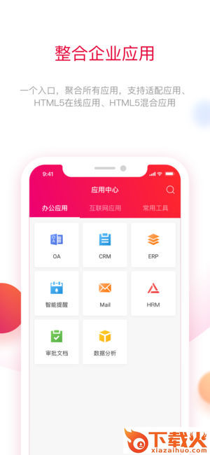 整合企业应用,一个入口,聚合所有应用,支持适配应用,HTML5在线应用,混合应用