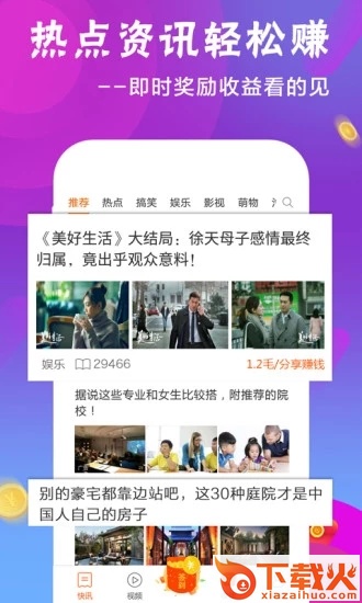 零花看点app下载,让用户通过新闻资讯来了解更多事情,丰富的主题精准的算法推荐,零花看点app还可以获得阅读奖励和分享邀请红包,了解一下。