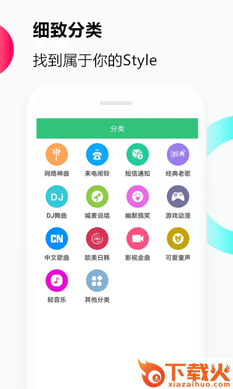 流行金曲,影视热曲,动漫游戏,短信闹铃,DJ舞曲,搞笑另类,网络神曲,网友上传等;