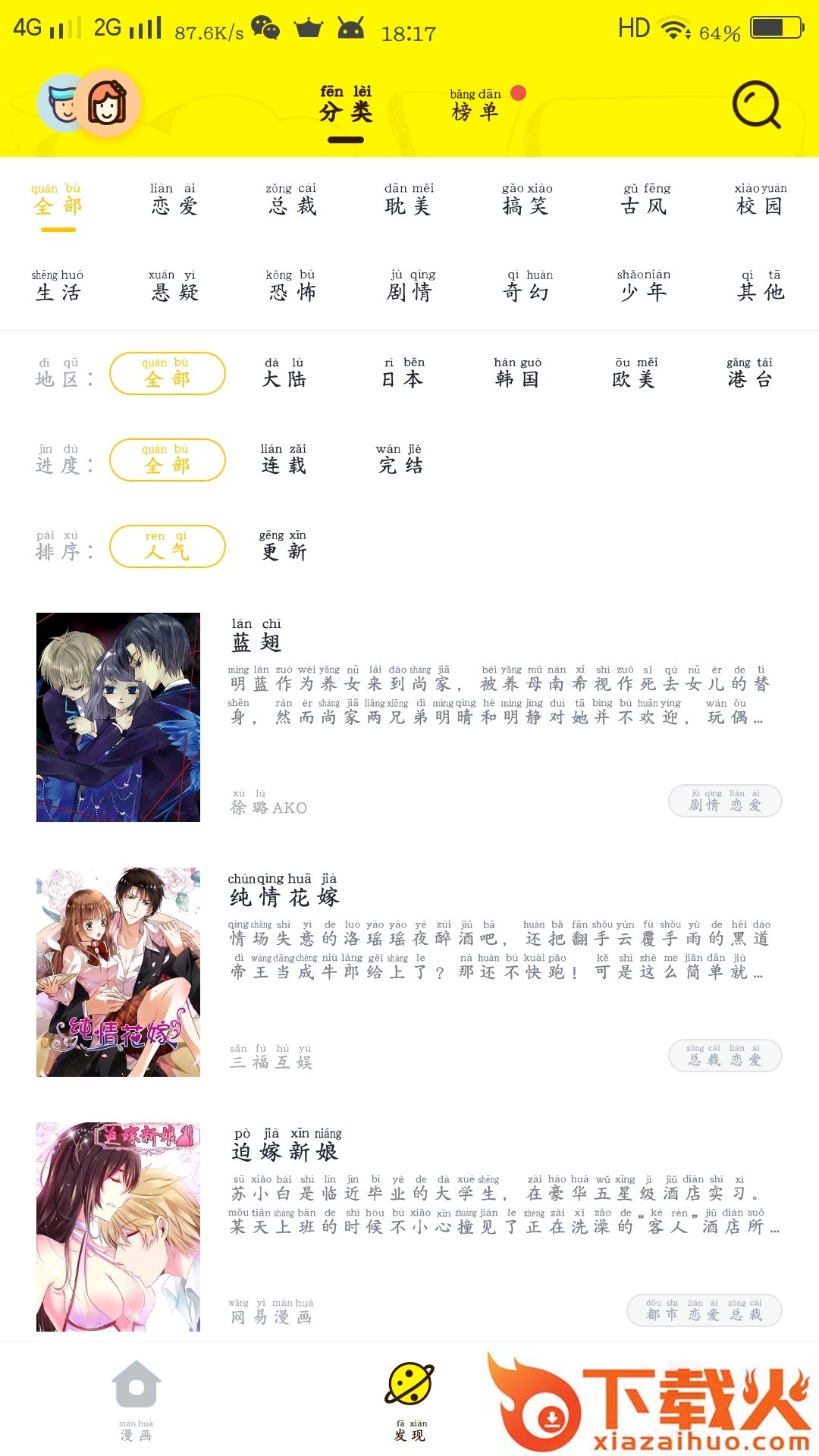 悦想看app,这里有超级全面的漫画内容。分类及时,更新超快,图片加载高清流畅,感兴趣的快来看看,离线下载也可以看哦。